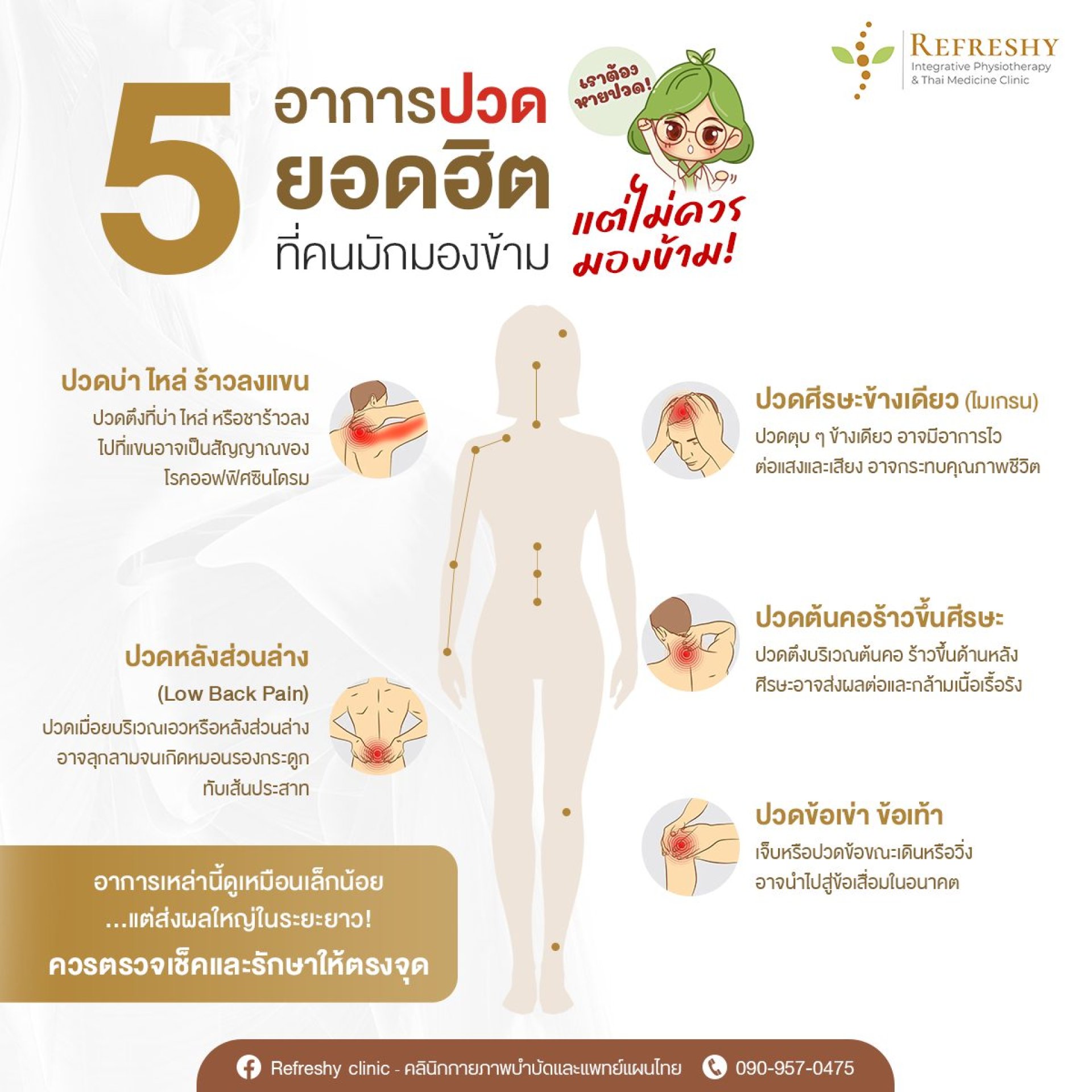 สามารถเข้ามาปรึกษาที่ รีเฟรชชี่ คลินิกกายภาพบำบัด แพทย์แผนไทยและแพทย์แผนจีน เพื่อการดูแลรักษาอาการแบบผสมผสานได้