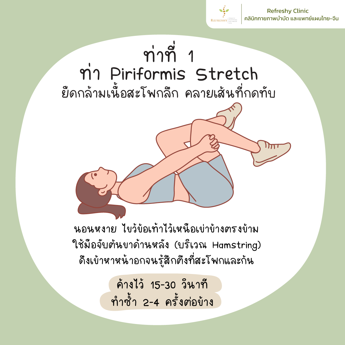 การยืดเหยียดกล้ามเนื้อที่ตึงตัวบริเวณสะโพกและหลังส่วนล่างจะช่วยลดแรงกดทับเส้นประสาทได้ดี