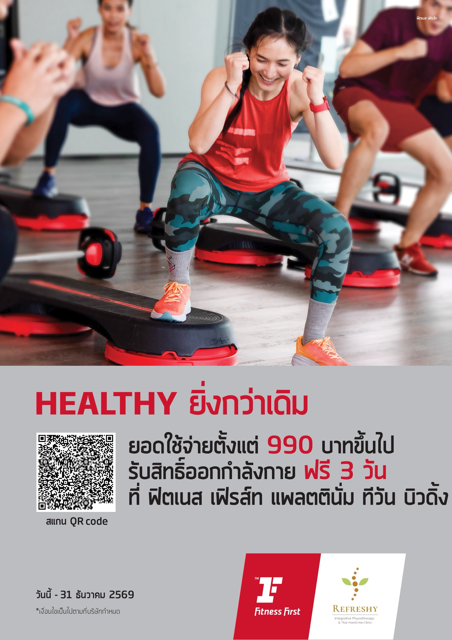 เพราะการดูแลร่างกายที่ดี คือการสร้างสมดุลระหว่าง 'การใช้งาน' และ 'การฟื้นฟู' ...รีเฟรชชี่จับมือกับ Fitness First ขอมอบทางลัดสู่สุขภาพดี ให้คุณออกกำลังกายได้เต็มที่ พร้อมการดูแลโครงสร้างร่างกายจากผู้เชี่ยวชาญ