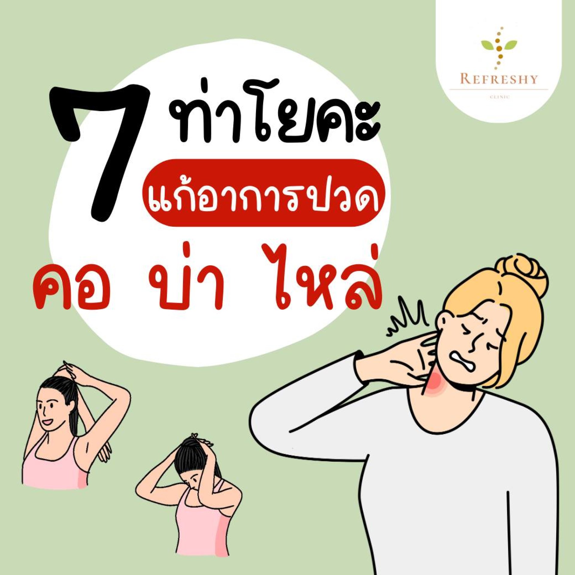 วันนี้รีเฟรชชี่ คลินิก จะพาทุกคนทำโยคะ 7 ท่าง่ายๆ แก้อาการปวดนั่งทำได้ขณะที่กำลังทำงานอยู่ ในตอนตื่นนอนหรือก่อนนอนก็ได้นะคะ หากทำทุกวันเป็นประจำรับรองว่าหายจากอาการปวดแน่นอน มาทำไปด้วยกันนะคะ